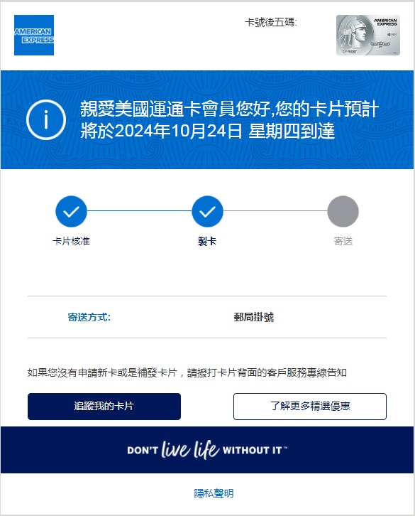 • 10/18 收到製卡的email,看到上面寫著17日核卡